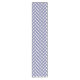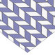 This table runner features an elegant chevron design with a geometric herringbone pattern in a trendy periwinkle shade and white, and black lines.