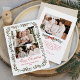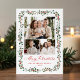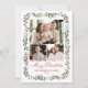 Send warm holiday wishes with this elegant 4 photo Christmas card featuring a front photo collage of one horizontal and two square photos framed by watercolor holly berries and greenery. “Merry Christmas” is displayed in graceful red calligraphy, with your family name and year below in classic serif lettering. The back showcases a fourth photo with space for your personalized holiday message, accented by a border of greenery, holly berries, and a red bow with ribbon. A festive and timeless photo collage card to share your memories with loved ones.