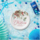 Add a festive touch to your holiday parties and Christmas dinner with our Elegant Holly Berries and Pine Cone paper plates. The personalized holiday paper plates feature painted red holly berries and pinecones with lush green leaves. "Merry Christmas" is displayed in a festive red calligraphy script with your name or custom text shown below.