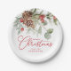 Elegant Holly Berries and Pine Cones Christmas Paper Plate