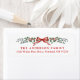 Ajoutez une touche de finition festive à votre courrier de vacances avec cette élégante étiquette d'adresse de retour avec des baies d'aquarelle et de la verdure agrémentée d'un ruban rouge au centre. Votre nom de famille et votre adresse de retour apparaissent ci-dessous en lettres serif rouge classique, créant un look saisonnier intemporel. Parfait pour l'appariement avec les cartes photos de Noël, les invitations de vacances et la correspondance saisonnière.