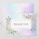Elegant holographic greenery leaves thank you card featuring delicate watercolour leaves framing your thank you message set in an elegant text. You can personalize with your own thank you message on the reverse or if you prefer to add your own handwritten message delete the text. A perfect way to say thank you! Designed by Thisisnotme©