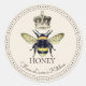 A simple elegant honey bee and crown honey food label sticker. Bee with decorative and script type on a cream background. Kitchen honey food labels