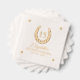 Créez vos propres serviettes personnalisées en feuille d'or à l'aide d'un modèle do-it-yourself simple et élégant, idéal pour une célébration à thème hippique. Ajoutez facilement un numéro personnalisé, une lettre initiale, un nom et une date au design luxueux. Ces belles serviettes personnalisées sont équipées de polices de script de calligraphie modernes et élégantes, estampillées en or réel, or rose ou feuille d'argent, pour apporter éclat et une touche luxueuse à votre décor de table d'accueil. Alors que le fer à cheval numéroté de fantaisie rend ces serviettes monogram particulièrement idéal pour un ranchera rustique quinceañera ou mexicain sucré 16, vous pouvez modifier le texte et le design pour travailler parfaitement pour les mariages équestres (avec un motif de grange), un anniversaire jalon pour tout âge, douche nuptiale occidentale, baby shower cowboy / cowgirl, fête d'engagement romantique pays agricole, fête de chance d'été remise de diplôme et plus. Bon appétit ! Catégorie : serviettes personnalisées quinceanera pour mis quince anos / fille; serviettes minimalistes pour le dîner de répétition de nom pour la réception; serviettes de mariage personnalisées avec un vrai revêtement métallique en or. Thème de couleur : ivoire, blanc et métal jaune champagne or (avec options en argent et rose or rose).