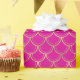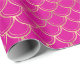 This wrapping paper features elegant faux gold foil scallop pattern on hot pink background.