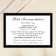 This lovely hotel accommodation card features a black border (or any colour you select) with black lettering. The script font is elegant to make this design lovely yet simply beautiful. You can customize all of your accommodation details. Copyright bargainsbyhenis