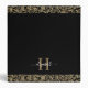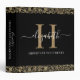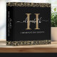 An elegant black and gold estate planning binder with a decorative border and your monogram with white script typography. Perfect for storing your important documents. Designed for you by Blackberry Boulevard.