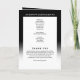 This elegant folded in loving memory funeral program features a timeless black and white gradient design, creating a sophisticated and heartfelt tribute. The front cover showcases a centred portrait framed by classic serif typography, honouring the loved one's name and life dates with dignity. The inner pages present a structured order of service, including welcome remarks, readings, and a space for a personalized obituary, or any text of your choice. The back cover features acknowledgments and a thank you message, or any text you choose. The refined layout ensures a meaningful keepsake, making this program a beautiful way to celebrate a cherished life and provide comfort to attendees.