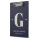 Elegant Indigo Blue White Trendy Monogram Template Clipboard