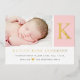 Elegant minimalist real gold foil initial block letter on blush pink with photo girl baby birth announcement. Personalize this by adding your own photo and details to make it special and your very own.