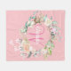 An elegant pretty pink initial monogram fleece blanket, featuring a beautiful white script name with a complimenting pink surname initial framed by a delicate watercolour floral rose garland on a peach pink background. Personalize to create a special keepsake gift to treasure! Designed by Thisisnotme©