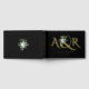Elegant gold foil initials and ampersand and eucalyptus branch with white flowers gold foil floral wedding guest book. This modern design includes an elegant ampersand and the couple's initials in gold foil along with an eucalyptus branch and white flowers on black background. There is a gold thin border around it. The back includes the same thin border and the branch of eucalyptus on black.