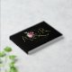 Elegant initials and pink roses wedding foil black guest book