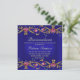 Cette Elégante invitation d'anniversaire personnalisable présente de l'or et des fleurs roses sur un arrière - plan bleu. Customisez-le en ajoutant vos détails dans la couleur et la police de votre choix !