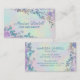 Beautiful iridescent art with large glitter shapes and purple watercolor splashes. Customize with your name, type of business, your title and your contact details, social media, and location. Perfect for hair stylists, makeup artists, cosmetologists, and so much more!