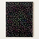 Un féerique jeu d'holographes confetti iridescente dots d'art noir, parfait pour des événements spéciaux, décorations de fête, et des célébrations uniques. Doté d'une collection de scintillants de faux parties scintillant chatoyants, de pois holographiques en rose, violet, menthe, vert, bleu, turquoise, jaune pastel couleurs, effets de dégradé métallique brosse points motif, sur un arrière - plan noir.
