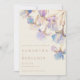This elegant save the date card is perfect for spring and summer weddings. This design features a ring of watercolor irises in shades of lilac and periwinkle blue. Subtle touches of gold add a glistening, magical element.