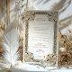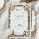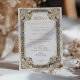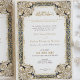 This sophisticated wedding invitation features a rich colour palette, including cream, navy blue, royal blue, and metallic gold accents. It is designed with ornate Islamic geometric patterns and traditional arabesque flourishes that create a regal and luxurious feel. The vertical layout showcases a balance of classic elegance with cultural beauty, making it ideal for a traditional Muslim wedding. Its intricate border design and harmonious colour scheme lend a timeless yet modern look that is sure to impress your guests.
