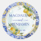 Elegant Italian Blue Tile Lemons Wedding Names Classic Round Sticker