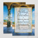 This elegant Italy or destination wedding invitation features a photographic image of the arches of the Villa Balbianello in the city of Lenno on Lake Como, Italy. This is the perfect invitation for an Italian style wedding or for a couple who loves Italian architecture. Featuring the colours of blue, green, and gold, this unique invitation has the same photo on the back with your names and wedding date. Easy to personalize with your own names, wedding date and information, and features a white overlay with gold border and hand lettered script.