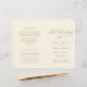 Les programmes élégants de cérémonie de mariage d'ivoire et de champagne d'or comprennent un monogramme fleuri avec script de calligraphie vintage et accents de design de défilement. Personnalisez le texte personnalisé pour votre fête de mariage, informations de cérémonie, et message de remerciement. Remarque : ces programmes de papier poids texte arrivent à plat et nécessitent un pliage pour être assemblés.