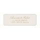 Gold and ivory color wedding return address labels featuring elegant old money aesthetic typography.