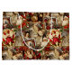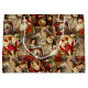 This Christmas gift bag has a vintage Victorian style, featuring an elegant collage of classic holiday elements. The design includes richly detailed illustrations of Santa Claus, angels, Victorian-era women, and festive decorations like poinsettias, pinecones, and ornaments. The color palette is dominated by deep reds, ivory, gold, and soft browns, creating a luxurious and nostalgic feel. Each element is framed in ornate, gilded borders with a touch of sparkle, enhancing the antique and opulent appearance. This gift bag evokes a warm, traditional Christmas charm perfect for a classic holiday setting.