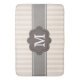 Elegant Ivory Beige Stripes Brown Custom Monogram Bath Mat