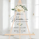 Elegant wedding welcome sign featuring beautiful flowers and 'Bismillah' in Arabic calligraphy.
