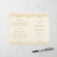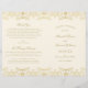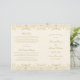 Delicate gold damask flourishes adorn a warm ivory background on this beautifully refined ceremony program. Intricate filigree borders frame "Marriage Ceremony Uniting" in elegant script for a sophisticated vintage look, with a coordinating backing design. Inside pages are fully customizable for your bridal party, ceremony order, and a personal thank you message on the back cover. Programs are printed on text-weight paper and arrive flat, requiring a simple centre fold.