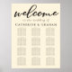 This sleek ivory wedding seating chart features beautiful minimalist black typography on the cream colour for your formal event with up to 12 tables. Traditional colours combined with the current trend of simple script on neutral colour decor.