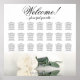 Enhance the aesthetic appeal of your wedding reception with this exquisite 21 table seating chart. The chart accommodates up to 210 guests and follows a traditional layout of 10 seats per table. The design exudes a romantic and stunning aura, showcasing a solitary ivory, white, or cream coloured rose resting sideways and mirrored in a water body. The elegant calligraphic title reads "Welcome! Please find your" with ample space at the bottom for the couple's names and wedding date. This seating chart provides a delightful welcome to your guests while facilitating their seating arrangements.