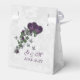 A classy white patterned background, a frame with three-dimensional swirls, ivy vines with purple flowers and two purple damask hearts. This wedding suite will provide an elegant setting for the most important day of your life. The design is available on several size invitations, save the date, RSVP and thank you cards and postage, matching envelopes, save the date stickers and magnets, return address labels and binders to keep your mementos and wedding photos in, and of course a mini totebag, jelly bean tin and more as wedding favours.