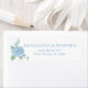 Un cottage d'inspiration vintage, classique et élégant design grand-millénaire avec une esthétique de jardin anglais victorien. De délicates hydrangées bleues à l'aquarelle et de charmantes fleurs oubliées sont disposées contre des bandes de preppy bleu doux avec un cadre ovale dessiné à la main par la coquille.