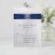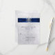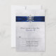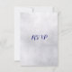 Chic winter wedding response RSVP card done in a light grey mottled background. Graphics of a rich dark blue satin looking ribbon with white lace edges, runs across the top of the card and is decorated, in the middle, with a silver tone and diamond looking snowflake jewel. Personalize the black and blue coloured text to suit your needs. Chose from many different card stock options for the look you like best. Matching products available.