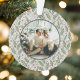 Celebrate your first holiday season as a married couple with this Elegant Just Married Christmas Ornament. The design features a vintage-inspired repeat pattern of watercolor green botanicals, framing your favorite photo in timeless holiday style.