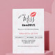 Elegant and classy Invitations to a Bridal Shower or Bachelorette Party with the phrase "KISS THE MISS GOODBYE."Miss in script letters on red lips.