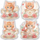 Enhance your crafts, gifts, and stationery with this set of four stickers featuring a charming red kitten sitting in a luxurious teacup adorned with intricate gold details and surrounded by soft floral accents. Perfect for cat lovers and fans of whimsical, elegant designs, these stickers capture a romantic and enchanting vibe. Ideal for scrapbooking, gift wrapping, or decorating notebooks and letters, they add a touch of magic and sophistication to any project. These high-quality stickers are perfect for holiday occasions, birthdays, or simply spreading joy.