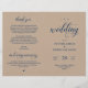 This is the foldable wedding ceremony program card, in Navy Blue elegance classy script, rustic brown Kraft theme.