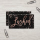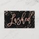 Elegant lashed script rose gold confetti splatters business card
