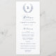 Elegant Laurel Wreath Crest Monogram Wedding. Traditional Wedding Order of Service. Navy Blue Wedding Monogram Crest Wedding Invitation.