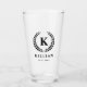 Monogrammed beer glass for your best man with his initial inside a laurel wreath with his name beneath.