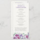 Élégant programme de mariage moderne avec des bordures d'aquarelle fleurie dans les tons violet et lavande. Idéal pour le printemps, l'été et le mariage de automne modernes, boho et rustiques.