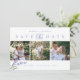 Elegant and rustic watercolor lavender flower with 3 photo collage in horizontal format, typography in dusty blue save the date card with QR code.