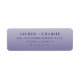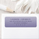 These return address labels feature a simple, elegant design with centred text on a gradient lavender background that transitions from light to dark. The classic serif font in navy blue provides a strong contrast for readability, creating a clean and sophisticated look. Perfect for formal events or personal announcements, the minimalist aesthetic emphasizes grace and refinement, making them ideal for weddings, invitations, or special occasions.