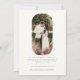 An elegant wedding save the date with a photo template, featuring watercolor, painted lavender plants and a mid-century oval cutout. A lovely choice for a summer wedding, a farm wedding, a wedding featuring lavender as an accent or a wedding in lavender fields.