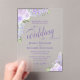 These beautiful acrylic invitations feature a stunning design with hand painted watercolor roses and blossoms in shades of lilac, lavender, and light purple, along with sprigs of eucalyptus leaves, lavender flowers, and garden greenery. The typography features elegant script lettering with delicate swirls and swashes on the ends of the letters. Available in both clear and frosted acrylic, these stunning invites will make a lasting impression and are a wonderful way to invite your friends and family to share in your joy on your special day.