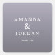 This wedding sticker features a minimalist design with a gradient background transitioning from light to dark lavender, creating a soothing and elegant aesthetic. The centered composition highlights bold serif typography for the names "Amanda & Jordan," connected by a stylish ampersand, while the phrase "thank you" is written in a simple sans-serif font below. The clean layout emphasizes simplicity and sophistication, making it perfect for expressing gratitude at your special event. Its contemporary style and gentle color palette convey warmth and sincerity, ideal for celebrating love and appreciation.