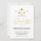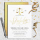 Stylish law school graduation party invitations in an elegant faux gold design, that you can customize for your upcoming celebration.