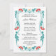 © Socialite Designs. An elegant leaf, floral and swirls border with beautiful colour combination of teal and red. The design is perfect for any celebration or gathering. Font style, text and paper type can be changed.